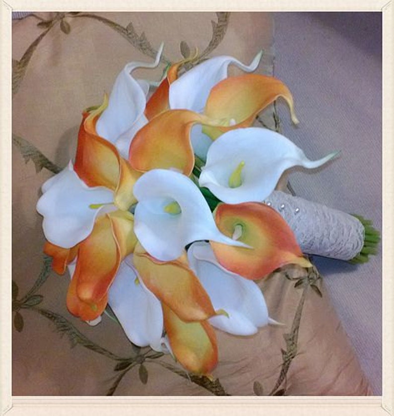 Get Orange Calla Lily Bouquet US. Calla lilies have many meanings depending on the color and individual sending them—but the most common meaning for calla lilies is purity and holiness, which makes a white calla lily bouquet a great choice for new baby flowers, religious celebrations, and sympathy gifts. Your bouquet calla lily orange stock images are ready.