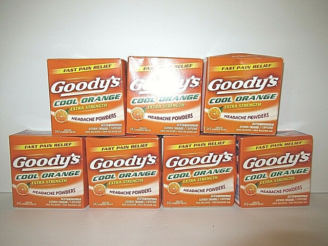 18+ Goody's Orange Headache Powder US. Goody's® cool orange extra strength headache powders. Temporarily relieves minor aches and pains due to headache, backache, toothache, menstrual cramps, muscle aches and colds.