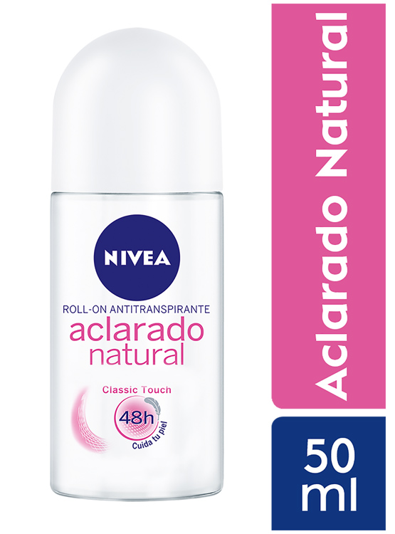 Nivea aclarado natural es el primer desodorante con fórmula 3 en 1 que está especialmente desarrollado para recuperar el tono natural de la piel de tus axilas. Desodorante antitranspirante de nivea, classic touch posee 3 beneficios en 1: Antitranspirante nivea aclarado classic 150ml $49.90. Nivea desodorante aclarado roll on satinado rd$110.00.