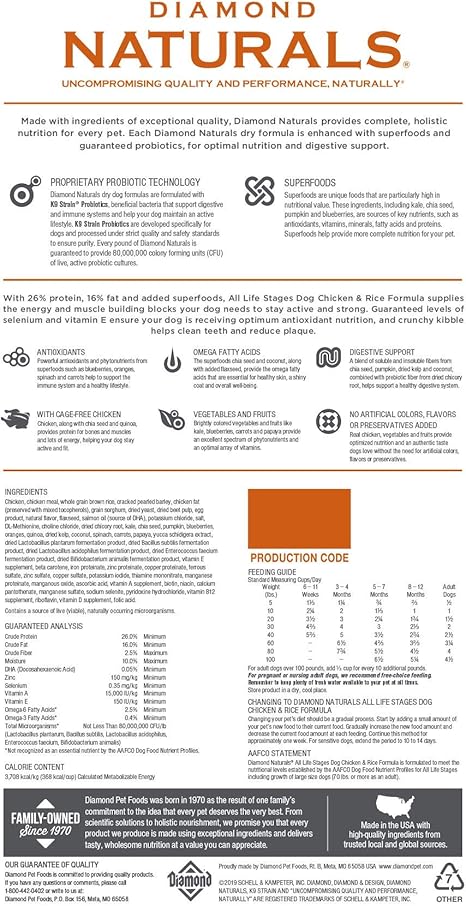 Get Diamond Natural Puppy Food Ingredients US. Diamond pet company also produces diamond, diamond care, nutragold, taste of the wild, professional plus. Diamond naturals dog food ingredients.