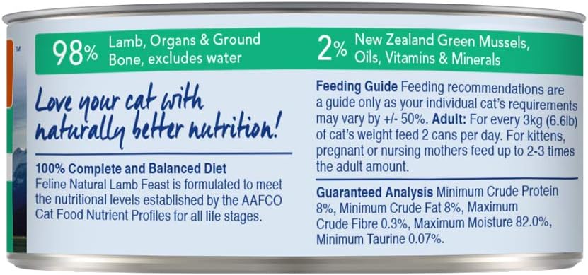 Get Feline Natural Canned Cat Food US. Feline natural premium canned cat food contains all the goodness of our existing product ranges in a convenient, ready to use can. Our cans are free from all gelling agents, the only thing we add is natural fresh new zealand water. and it's cheaper than ziwipeak canned :b.