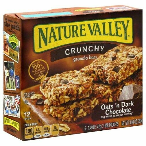 Nature valley granola bars crunchy oats n dark chocolate.