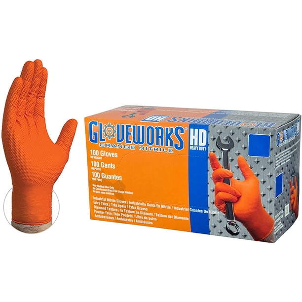 Get Orange Nitrile Gloves With Grip US. Powder free industrial nitrile orange diamond textured gloves. Orange nitrile gloves offer incredible levels of grip, wet or dry.