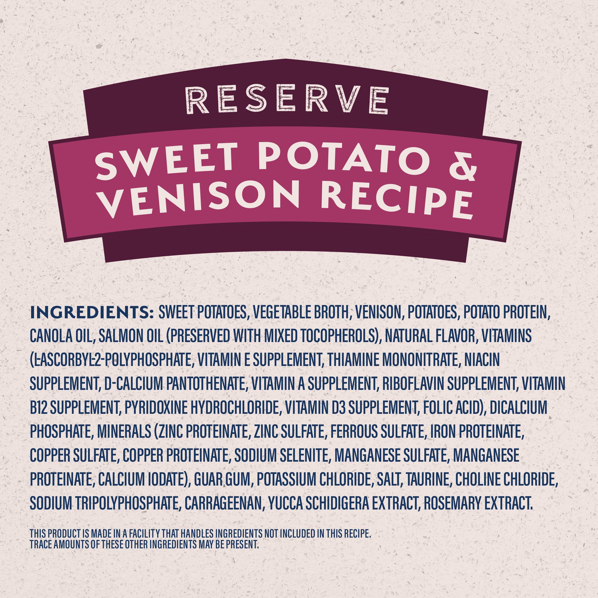 View Natural Balance Sweet Potato And Venison Discontinued UK. Venison, venison broth, sweet potatoes, potatoes, dehydrated potatoes, potato protein, salmon oil, canola oil, calcium carbonate, dicalcium the top 5 ingredients included in natural balance limited ingredient venison & sweet potato canned dog food are: In addition to its fiber content, sweet potatoes.