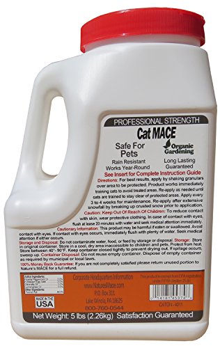 View Nature's Mace Cat Repellent Granular UK. Nature's mace is the leading manufacture of all natural animal repellents that are safe for veggy gardens, animals and children. Our spray is safe for our spray will not wash off during rain, irrigation or normal use.
