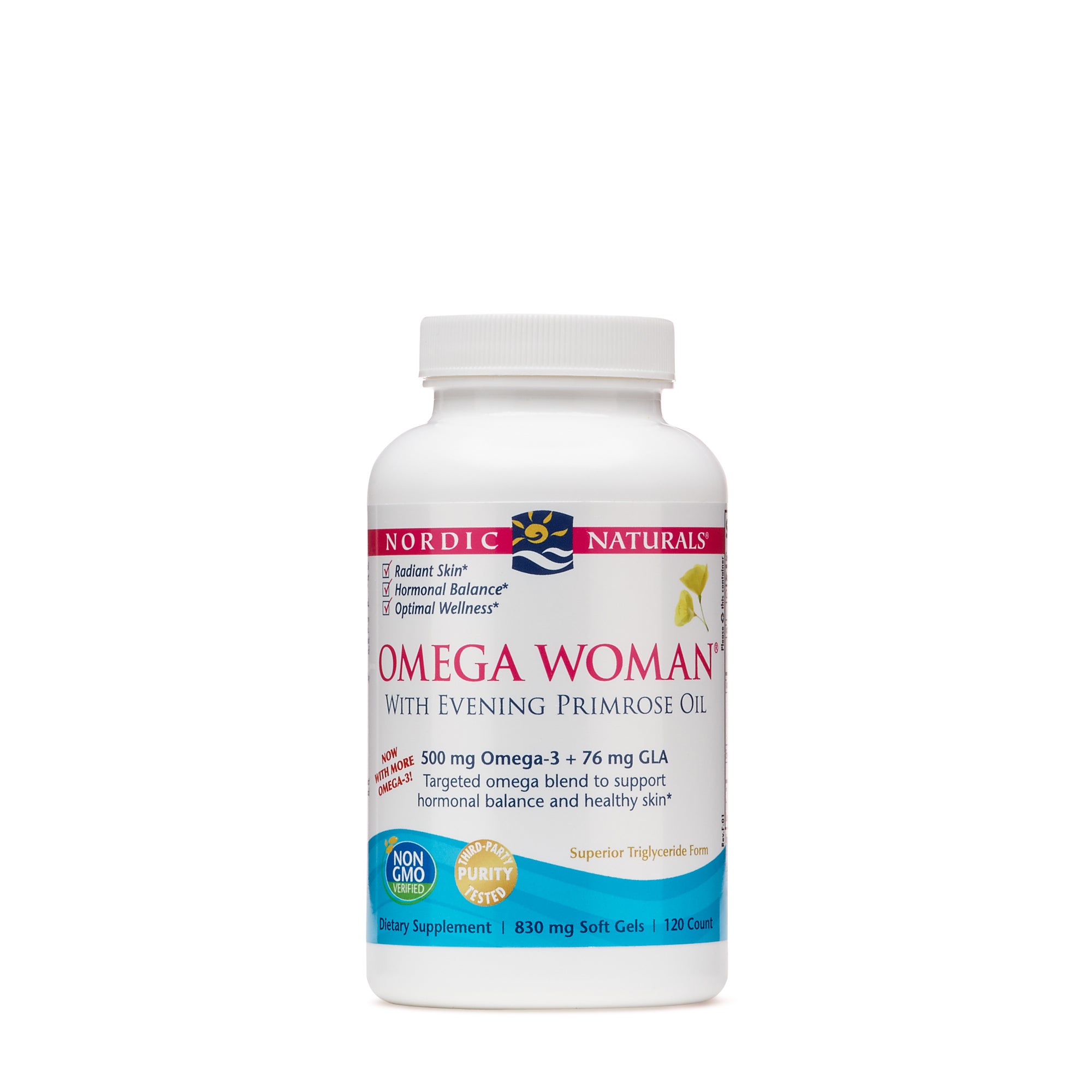 View Nordic Naturals Omega Woman With Evening Primrose Oil 120 Softgels US. No gluten, milk derivatives, artificial colors or flavors. Oil of evening primrose 1.35 g †.
