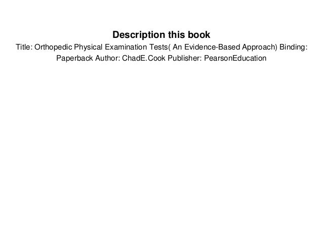 In this book, you will learn topics. Before deciding to buy any orthopedic physical examination tests, make sure you research and read carefully the buying guide somewhere else from trusted sources. Kindle file format orthopedic physical examination tests an evidence based approach 2nd edition. Physical therapists have access to many textbooks and manuals that accurately describe the various tests and measures used during orthopedic physical view full article text.